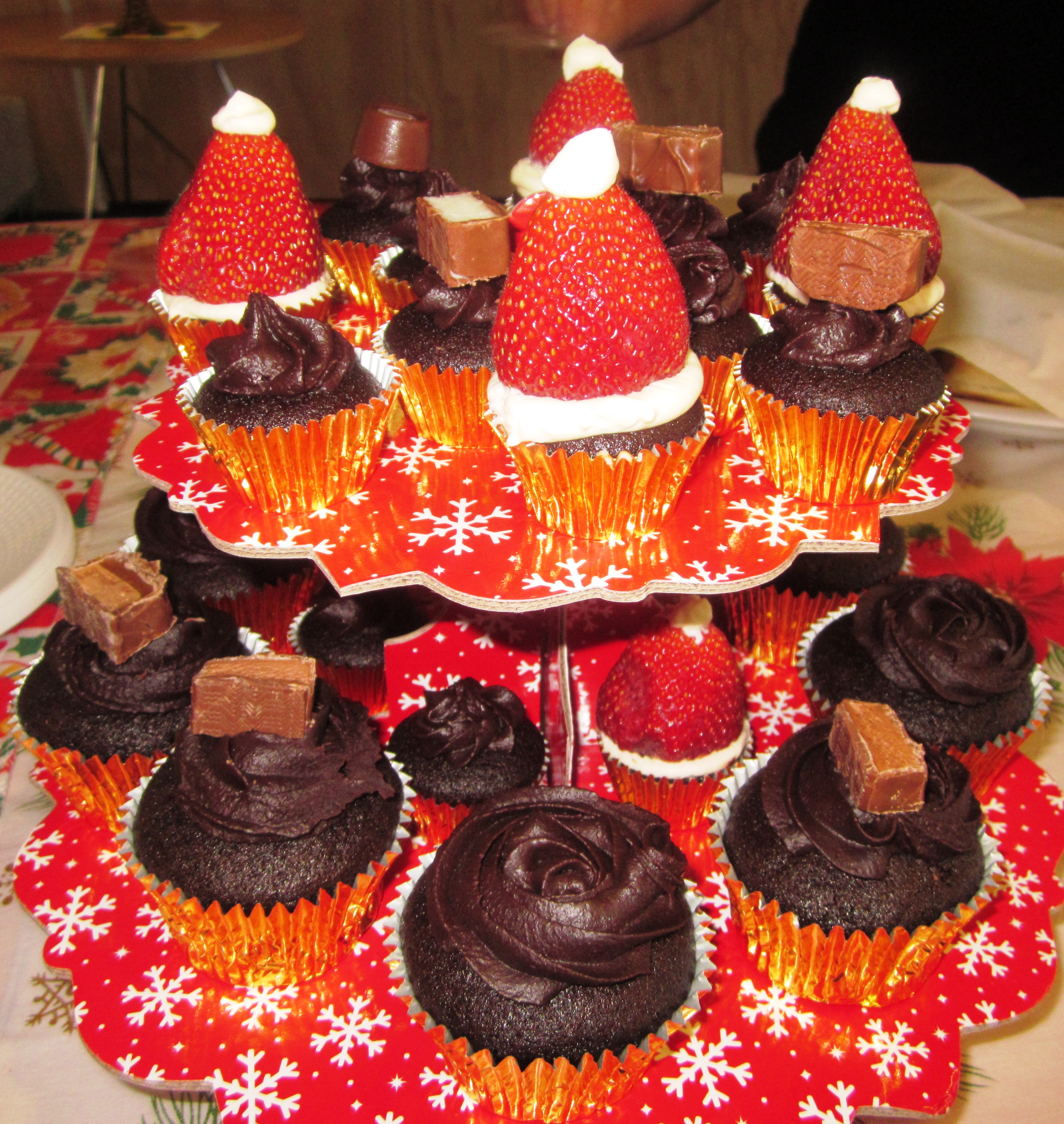 Cupcakes Posted on December 23, 2012 by myfood I turned some of the cupcakes into santa hat cupcakes using the frosting from the yule log recipe and strawberries Published by myfood View all posts by myfood