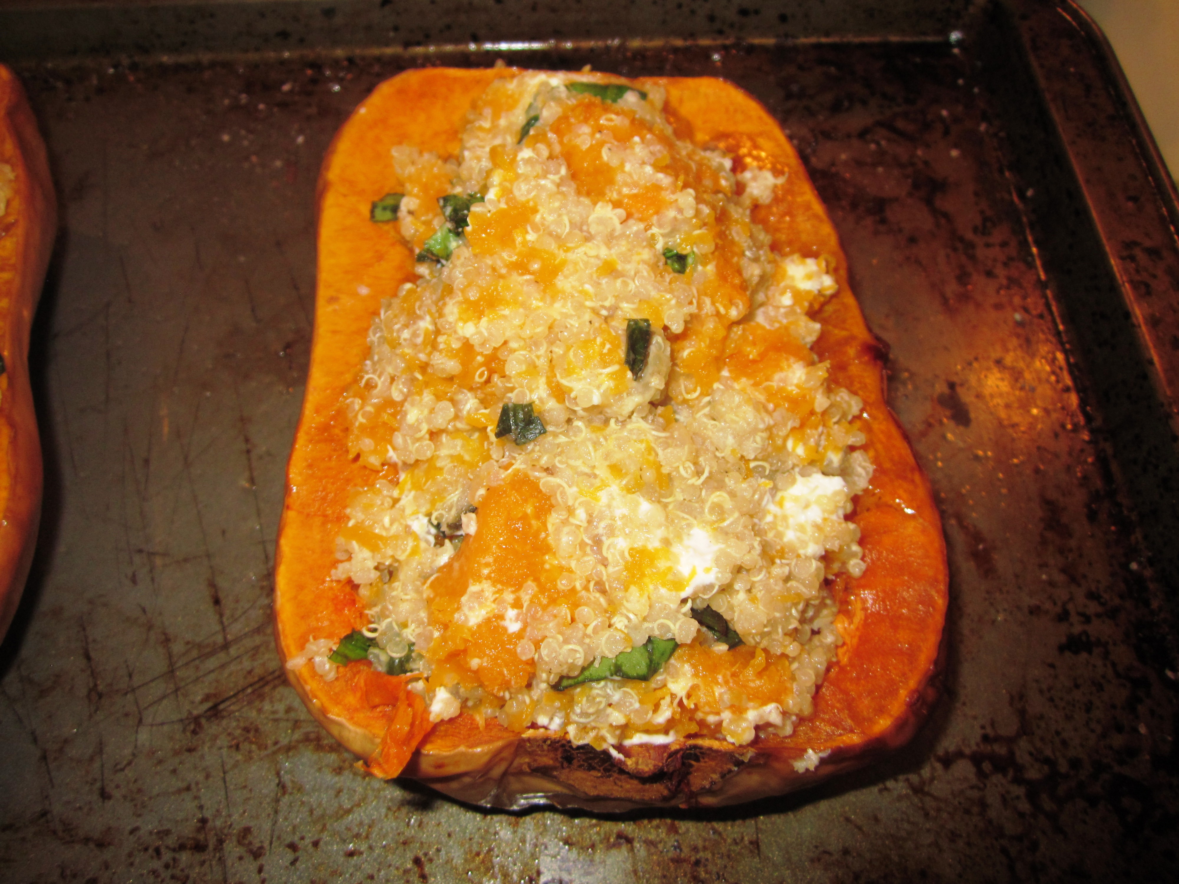 Stuffed butternut pumpkin with quinoa and goats’ cheese