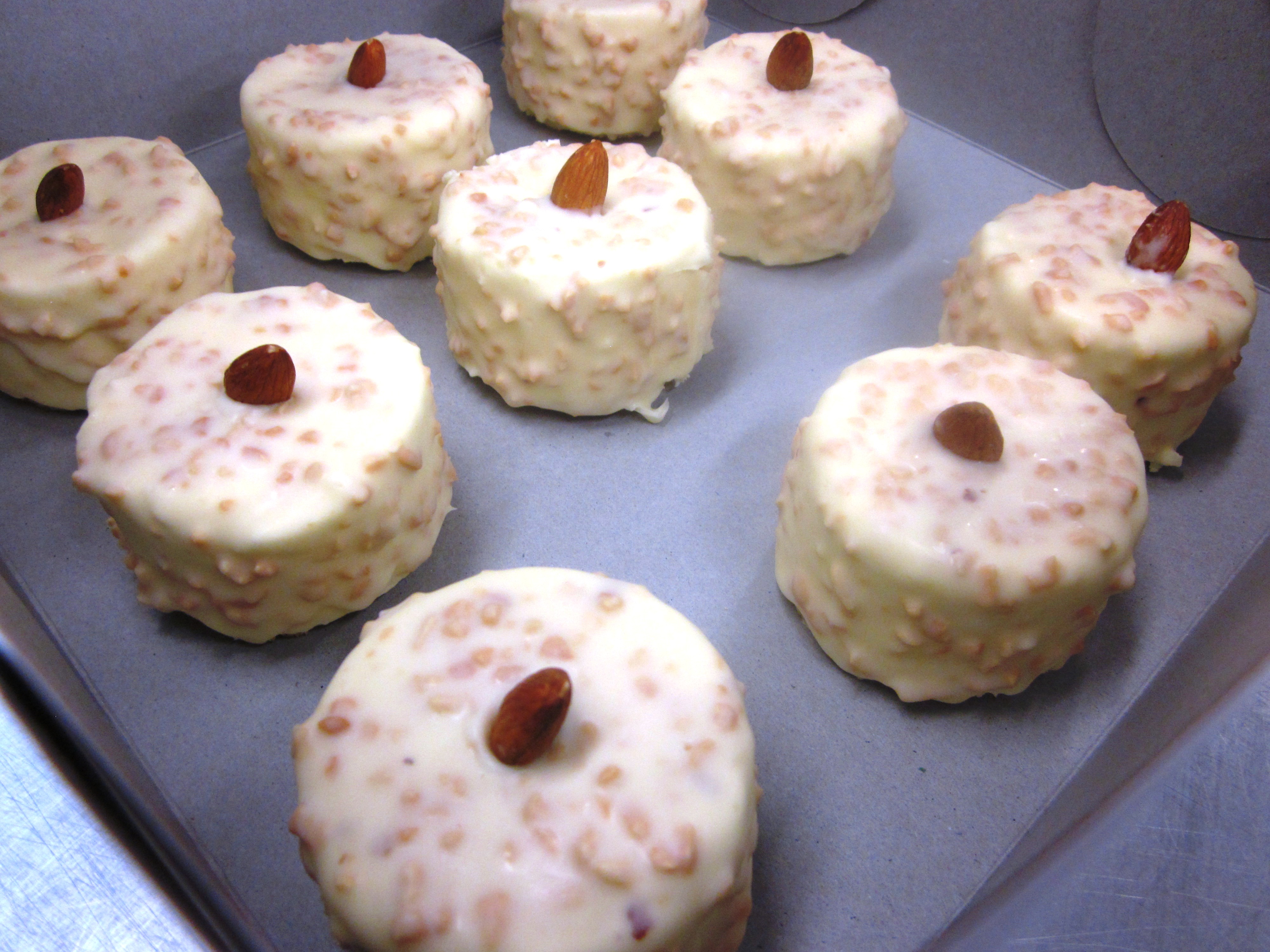 I attended the New Trend: Individual Cake class where we learnt to make three different cakes that you would expect to find in a patisserie in France, using a number of different techniques and layers in each cake. This is apparently the most technical of the baking classes Patrick runs at the moment, so I certainly jumped into the deep end. However each step of the cakes was broken down into manageable taska and although it is a full on day, the end results and the reactions from people who saw and tasted the final cakes and the skills I have learnt mean that it was definitely worth it. It was also a very good class size with only six students in the class.