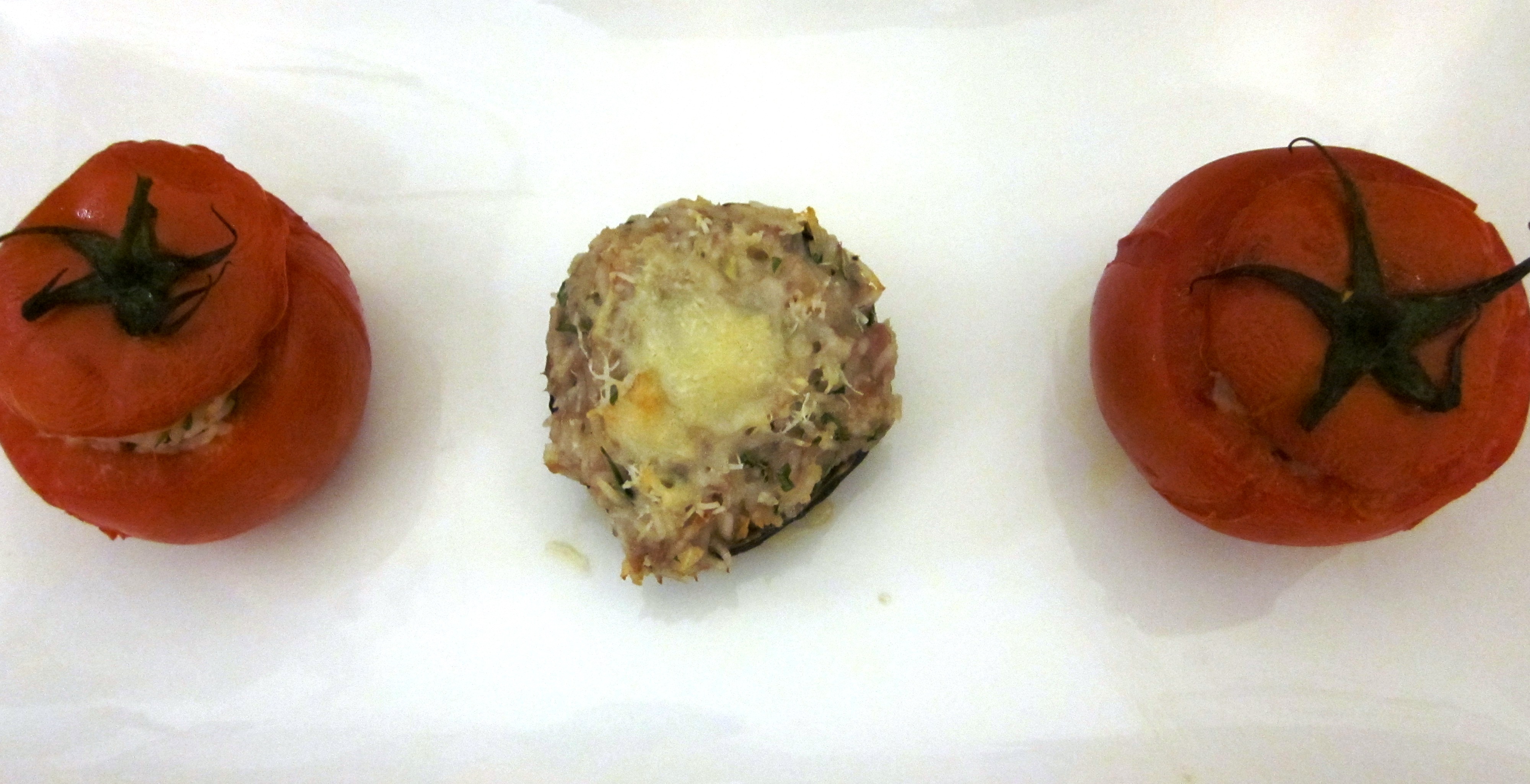 Stuffed Tomatoes (and mushrooms) with baked witlof and ham